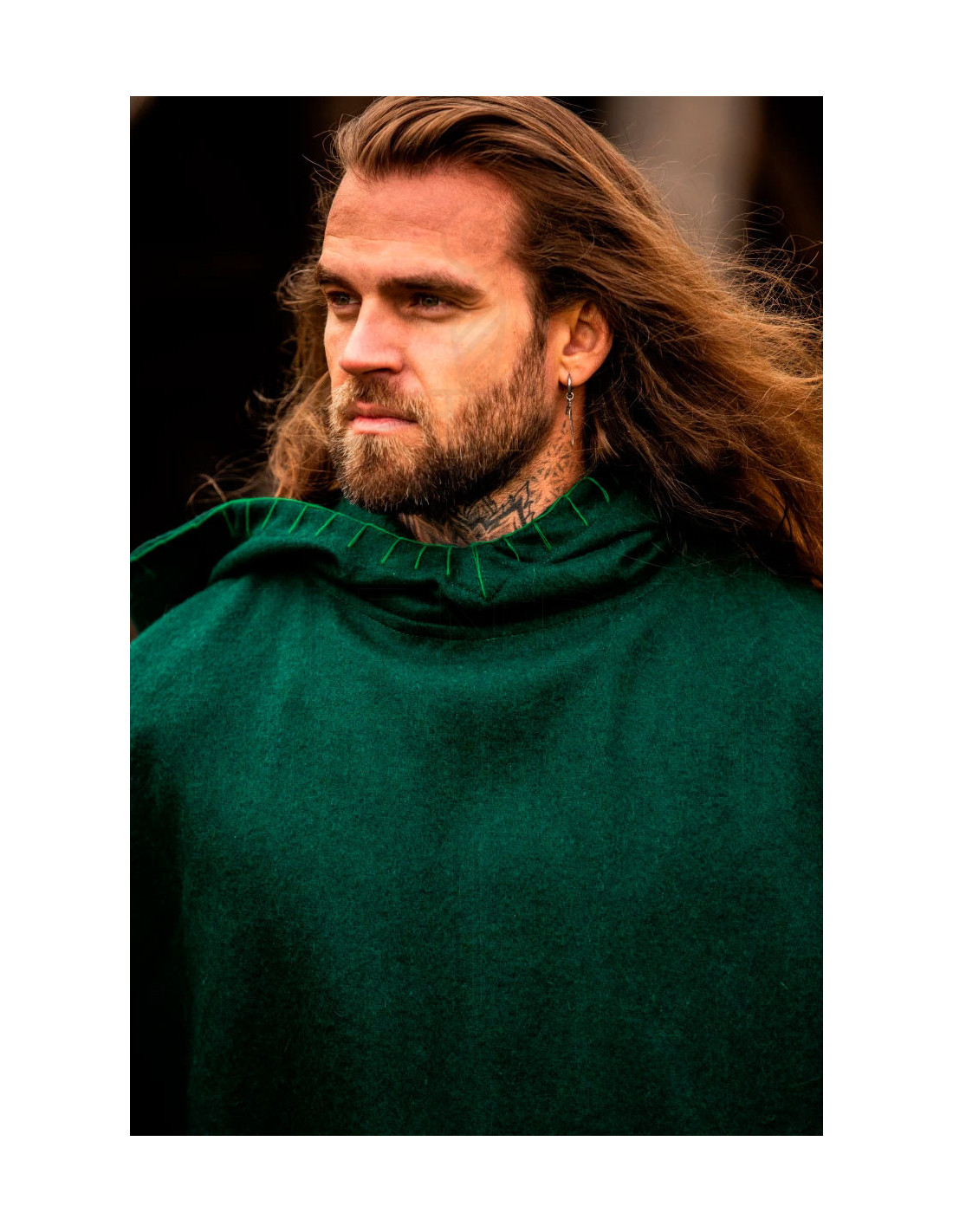 Are you looking for a high quality and authentic Viking gugel? Do not look any further! We present the Viking Gugel Egill model, made of green wool. This gugel is perfect for those who want to stand out at any theme party or event.