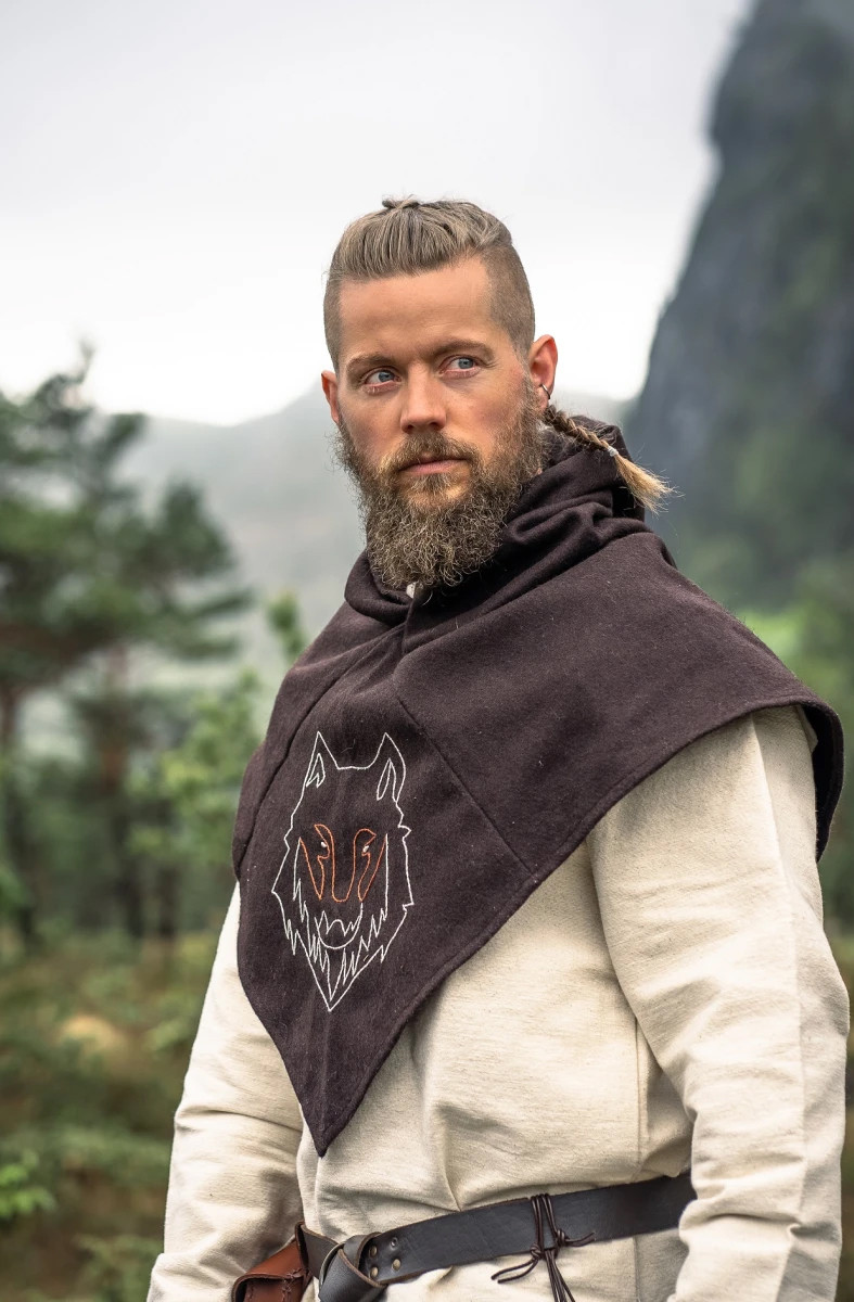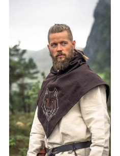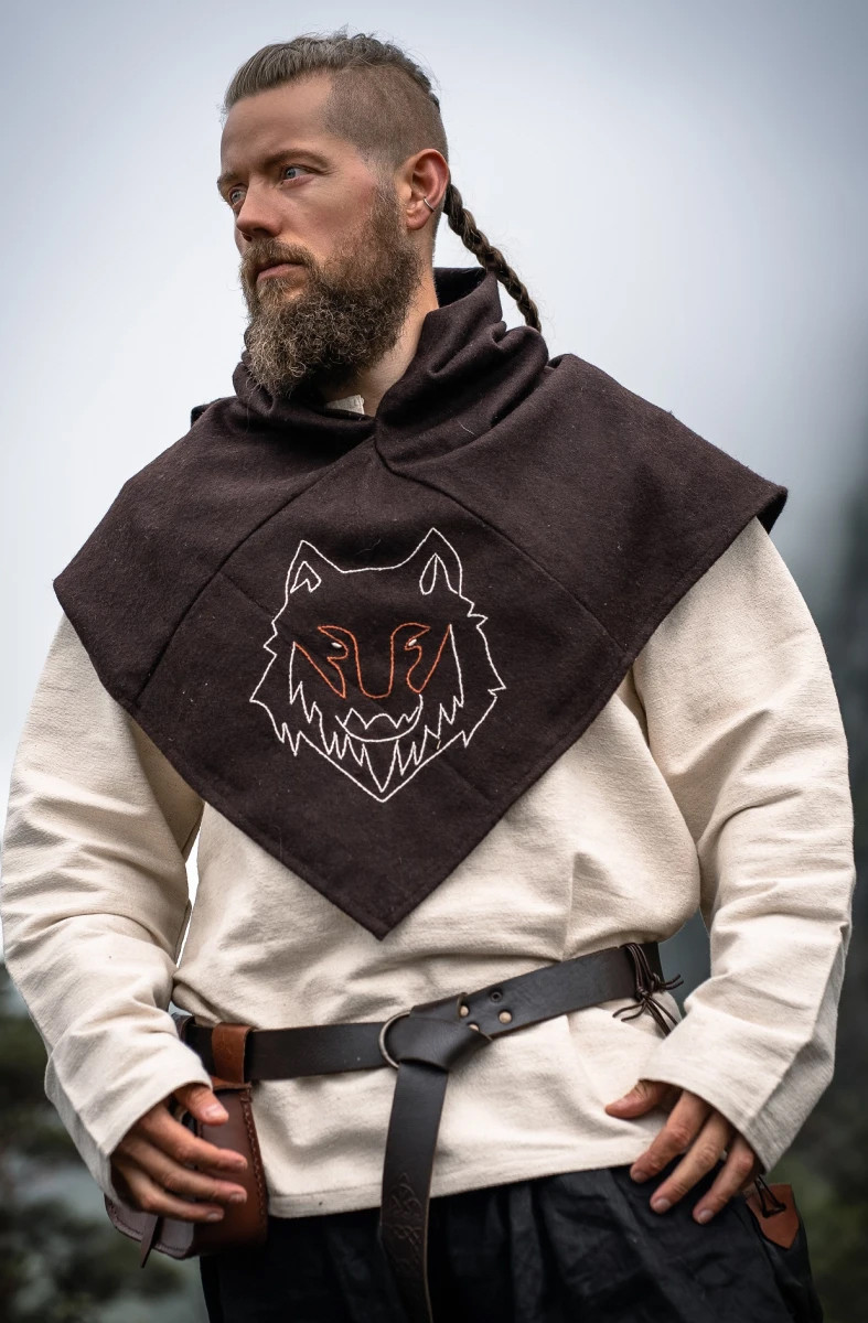 Explore the Viking essence with the Haldan gugel in brown with embroidered wolf head! Inspired by an authentic historical find, this gugel will immerse you in the fascinating Viking culture and give you a captivating and unique style.