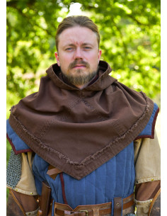 Discover the essence of history with this impressive medieval cotton hood, inspired by Norwegian archaeological finds from the 10th to 12th centuries. Perfect for recreating mysterious characters, clever travelers, or period warriors, its dark brown color gives it an authentic and durable appearance.