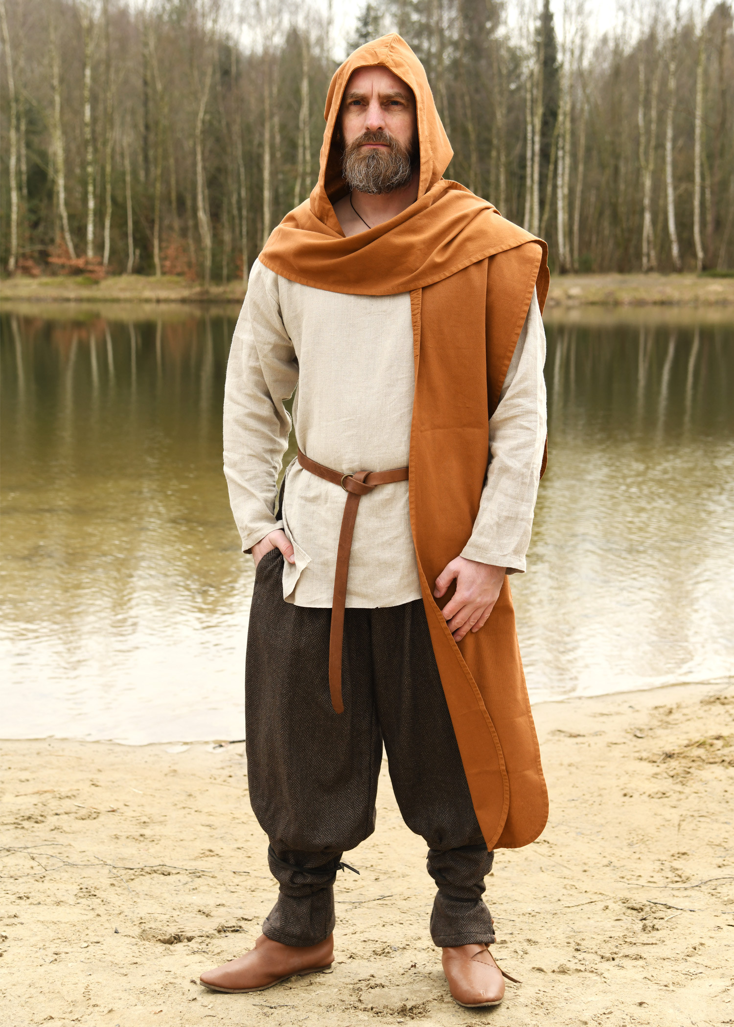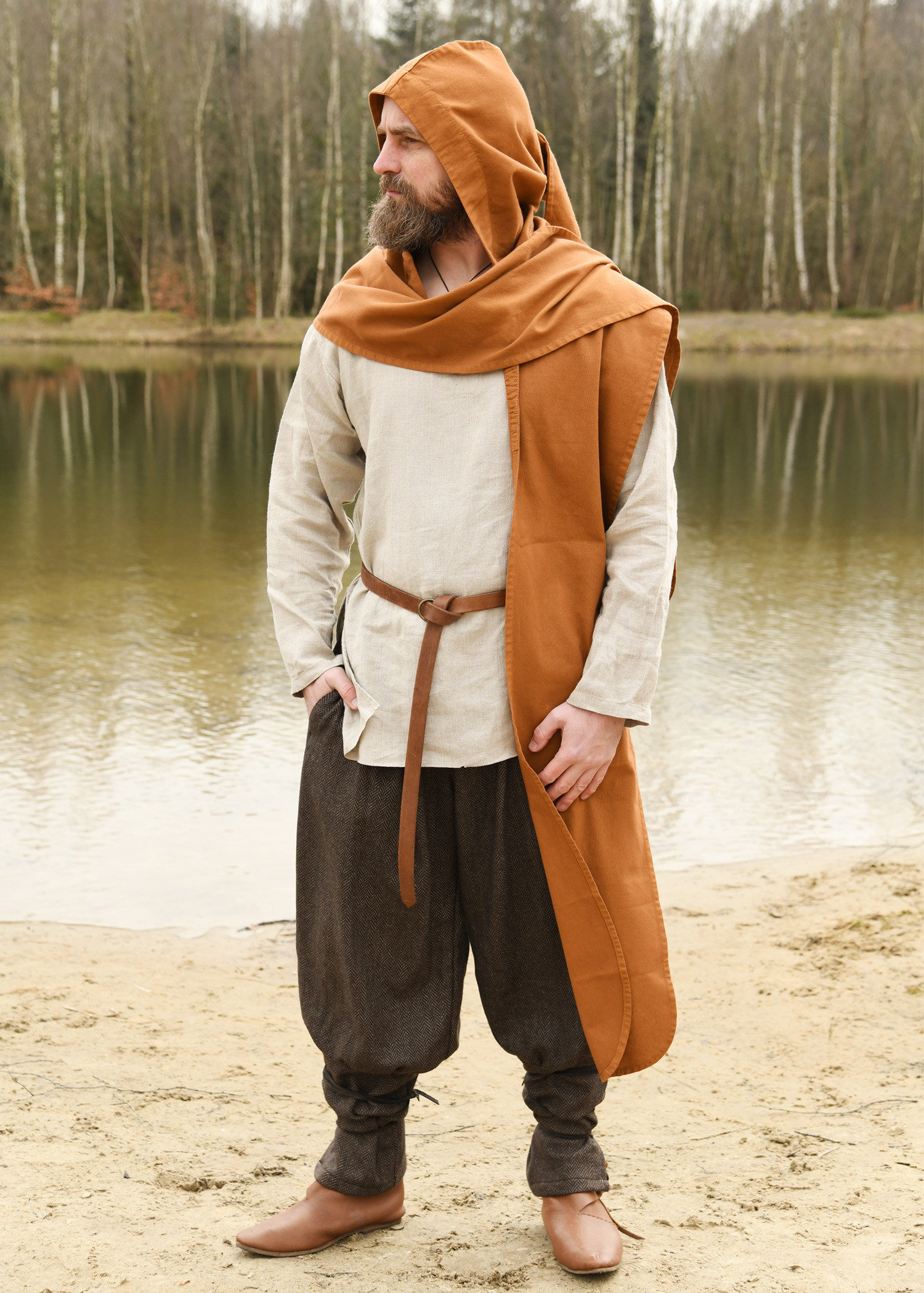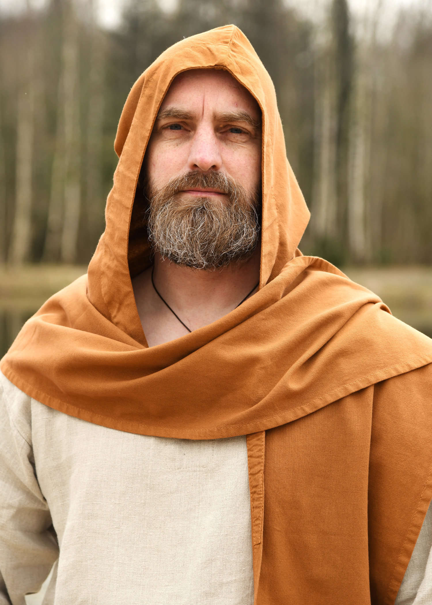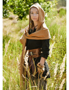 Are you looking to add an authentic and mysterious touch to your medieval or fantasy outfit? This hooded scarf in soft beige cotton is the perfect piece to complete your look in a versatile and stylish way.