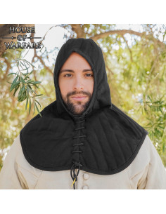 This piece is especially valued by LARP enthusiasts and professionals in theater and historical reenactment due to its aesthetic faithful to the 13th to 15th centuries, combined with functionalities designed for modern use. In those times, padded hoods like this were essential for absorbing blows and preventing chafing, a practical detail that remains highly relevant today.