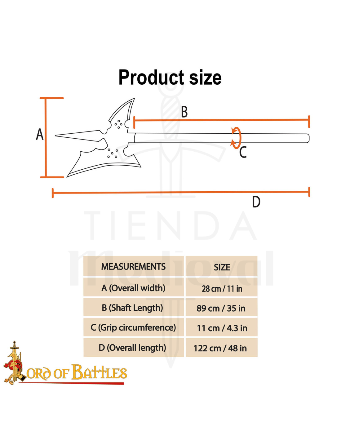 Interested in historical context? This model reproduces the aesthetics of the halberds that dominated European fields between the 14th and 16th centuries, used by pikemen and guards, adding authenticity to any Renaissance or museum setting.