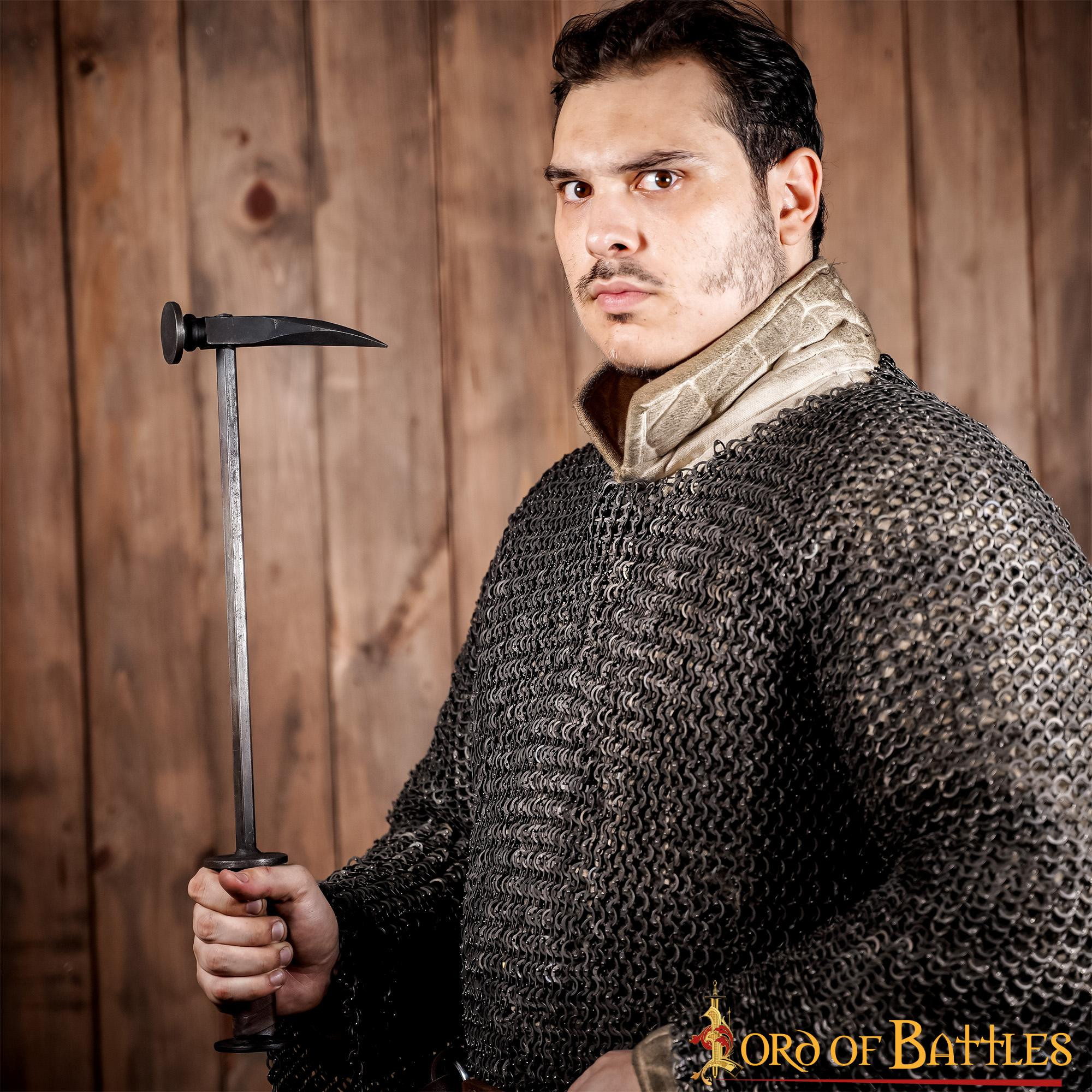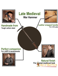 The hammer's full tang ensures maximum strength and durability, making it the perfect ally for fierce gothic knights in their quest for victory. In addition, its handle is lined with genuine leather, providing a secure and firm grip even in the most chaotic situations.