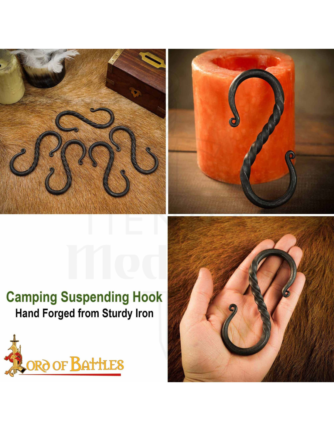 These handmade S hooks combine artisanal appearance and functionality, offering you a safe and stylish way to hang pots, cauldrons, or lanterns over the fire. The twisted design in the center not only adds visual character but also enhances grip and prevents slipping, while the rolled ends keep each piece securely in place during cooking or display.
