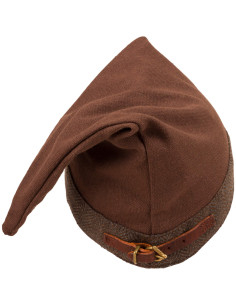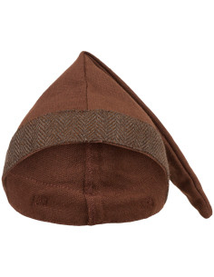 The medieval cotton hat model Toki in light brown color is the essential accessory to complement any standout outfit. Inspired by historical discoveries from the Viking era, this hat is distinguished by its elegant herringbone edge, which accentuates its authentic look. Thanks to its adjustable closure, which includes a strap and buckle at the back, you can easily and comfortably find the perfect fit.
