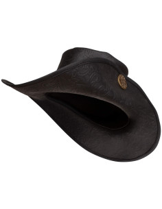 Captain's Tricorn Hat with Baroque Engraving, Deluxe Brown Leather