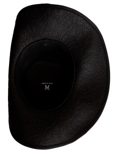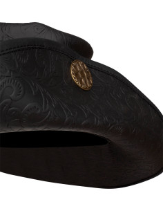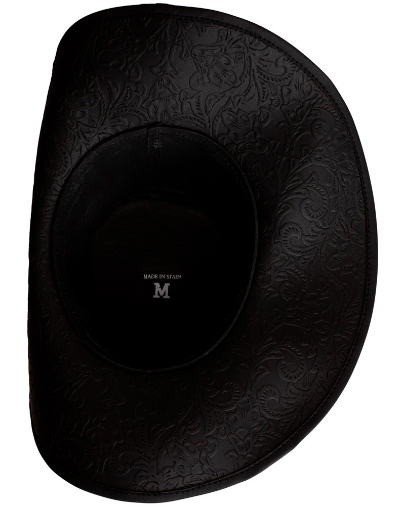 Captain's Tricorn Hat with Baroque Engraving, Deluxe Black Leather