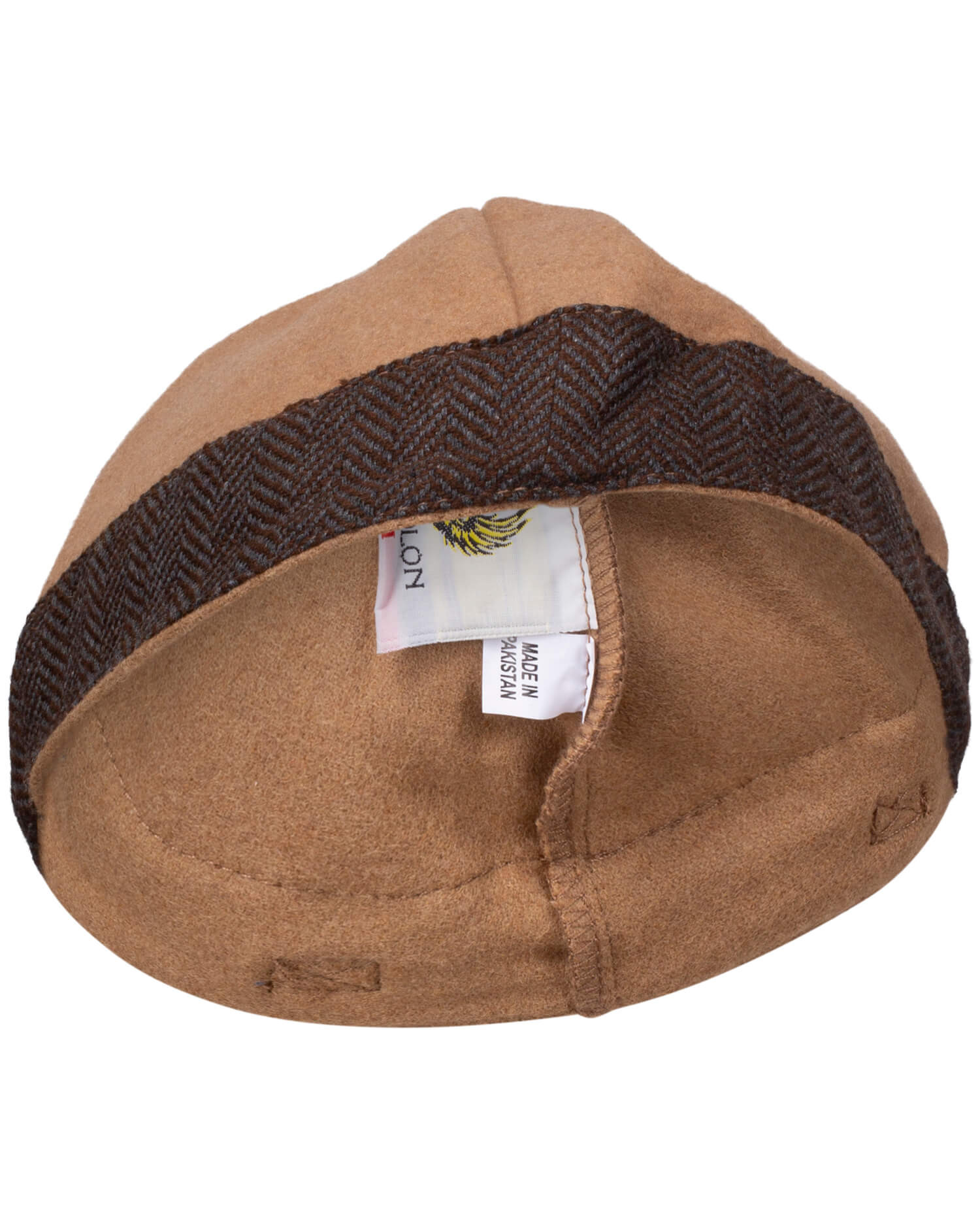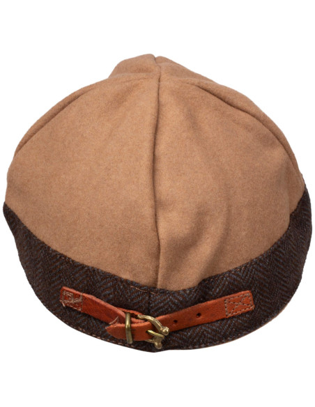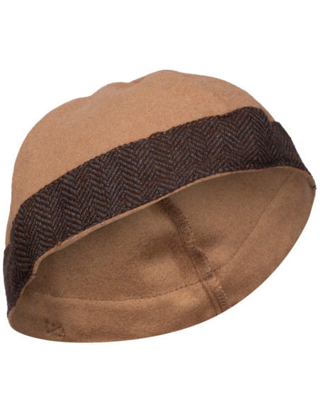 The robust fabric with a wool-like appearance offers a warm and consistent feel, accompanying you all day without losing shape. The rounded silhouette and beret-style finish adapt naturally to historical recreation looks and also to more sober everyday proposals, adding personality without overwhelming.