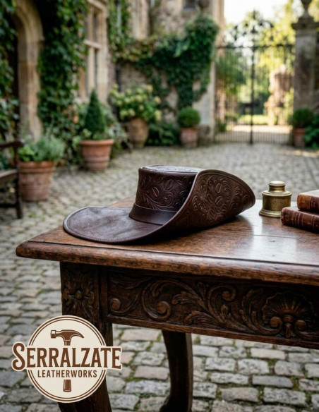 Your true authority and boldness is reflected in every step you take, in every gaze you attract. The identity of a true leader, an adventurer who defies norms, is built with accessories that not only complement your style but define your story. Imagine wearing a transformative vehicle like the Captain's Tricorn Hat with Baroque Engraving, Deluxe Brown Leather, a symbol that embodies the nobility of past eras and the bravery of those who conquered seas and paths. This is not just a hat; it is your mark of authority, the piece that consecrates your character as an explorer and conqueror. The embossed texture and baroque pattern open a window to opulence, reminding you that you deserve the best, that your legacy deserves to be marked by details that scream exclusivity and power.