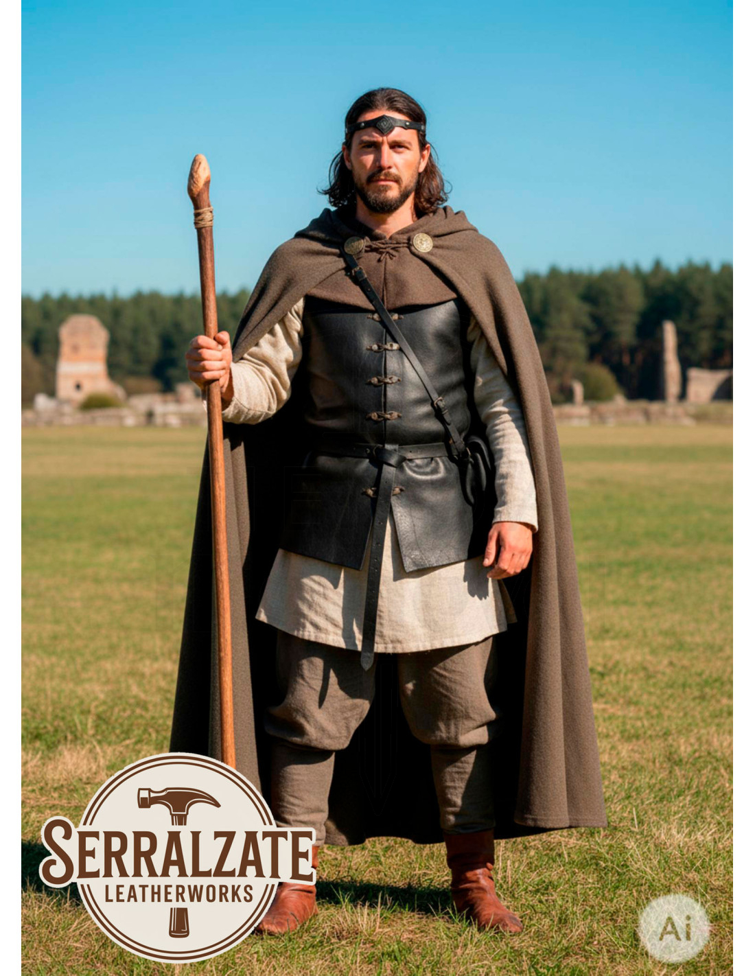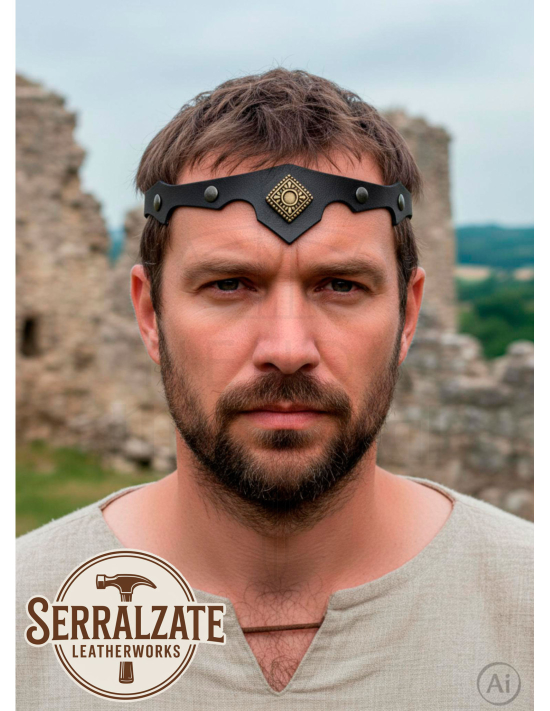 Do you want to look like a true medieval noble at your themed events or reenactments? This rhombus tiara with leaves in black is the perfect choice to add an authentic touch to your costume. Designed with high-quality leather and metallic embellishments on the sides and front, it provides an elegant and realistic appearance that complements any costume or historical outfit.