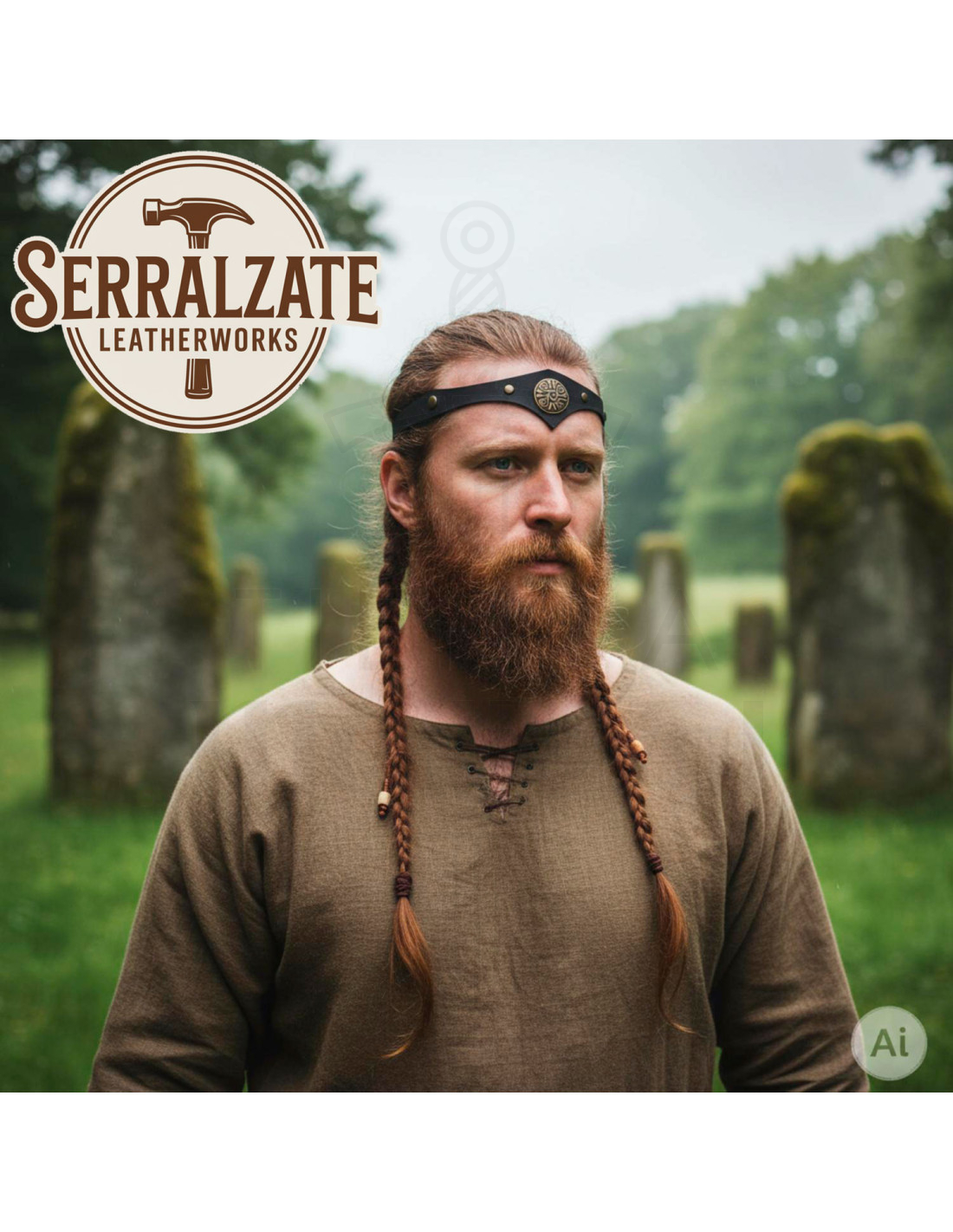 Its design protects the forehead with that delicate elegance provided by the metal ornament with Celtic motifs and rivets, highlighting details that reflect history and tradition, ideal for people who enjoy accessories with character and spirit. The adjustable strap at the back, made of leather cord, ensures perfect comfort and a personalized fit, making it suitable for various occasions.