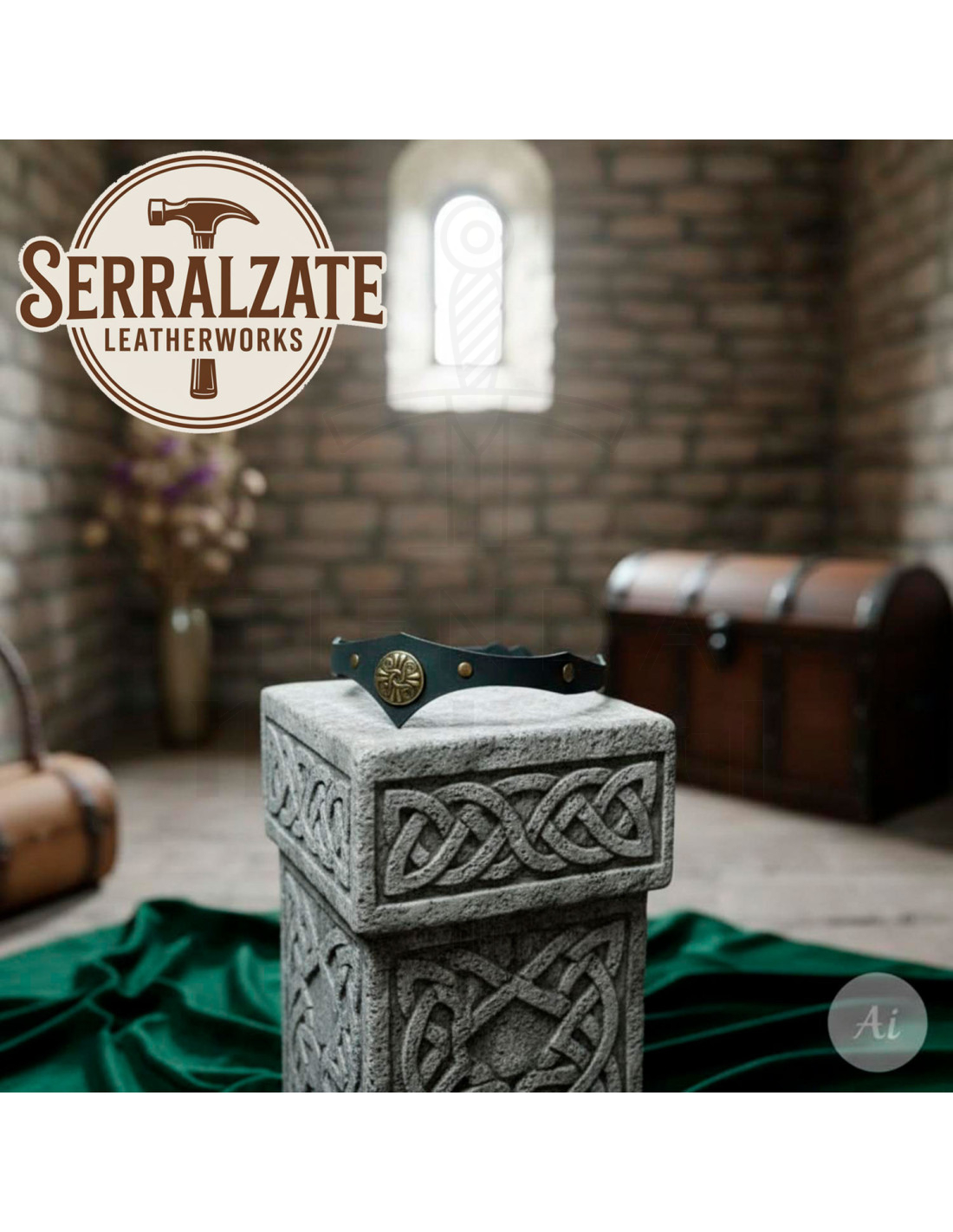 Are you looking for a touch of ancestral inspiration with an authentic style? This Celtic Storm Tiara in black leather is perfect for those who want to wear a unique accessory full of meaning. Handmade in Spain by expert artisans, it combines the quality of top-grade leather with a design that evokes the strength and mysticism of ancient Celtic traditions.