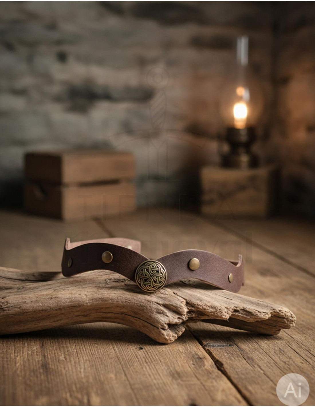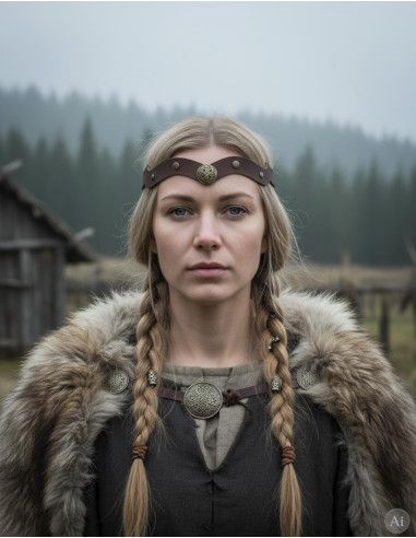 Are you looking to showcase a style that combines the strength of Viking history with an artistic and sophisticated touch? This Viking tiara with Celtic knots and sea waves in brown is the perfect choice for those who want to stand out with a unique and meaningful accessory.