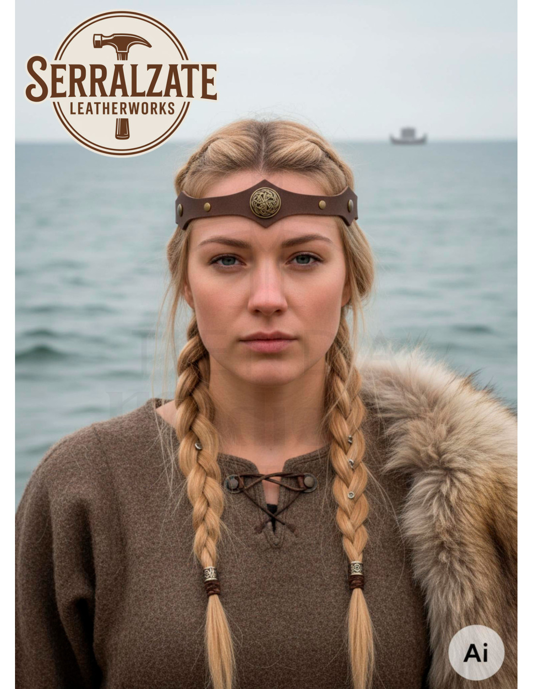 Are you looking to showcase a style that combines the strength of Viking history with an artistic and sophisticated touch? This Viking tiara with Celtic knots and serene waves in brown is the perfect choice for those who want to stand out with a unique accessory full of meaning.