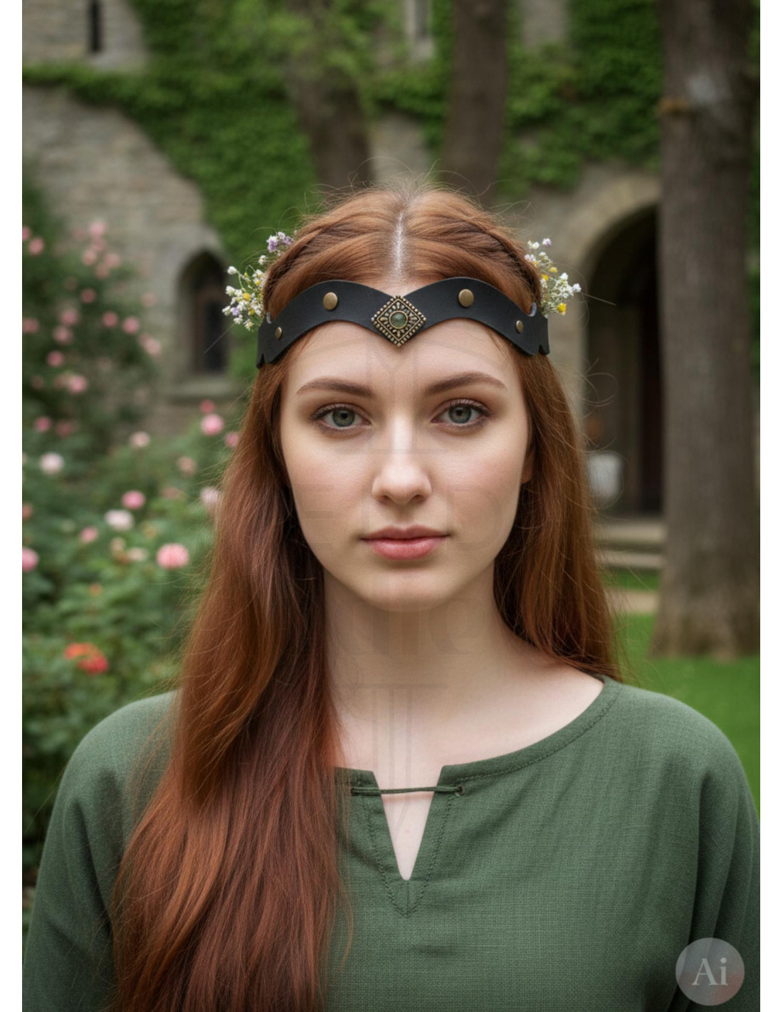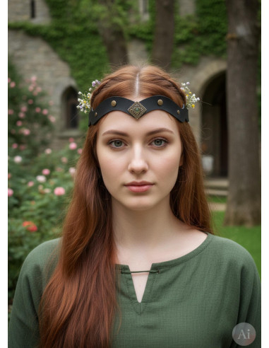 Are you looking for a touch of medieval elegance that you can adapt to your style? The black Medieval Florian Tiara is the perfect choice for those who desire an authentic and handcrafted finish in every detail. Its versatile design easily adjusts thanks to a practical leather knot at the back, ensuring comfort and a perfect fit without hassle.
