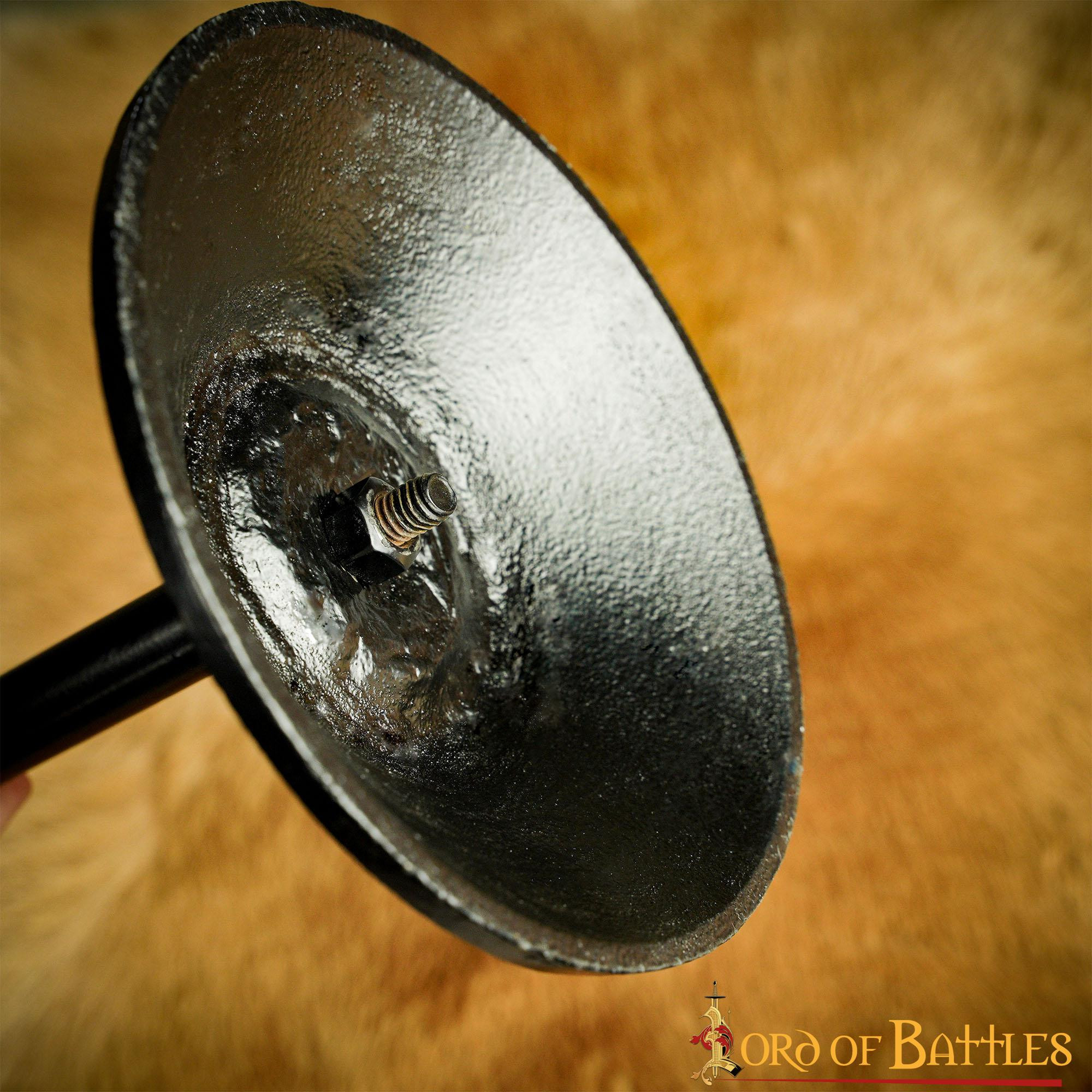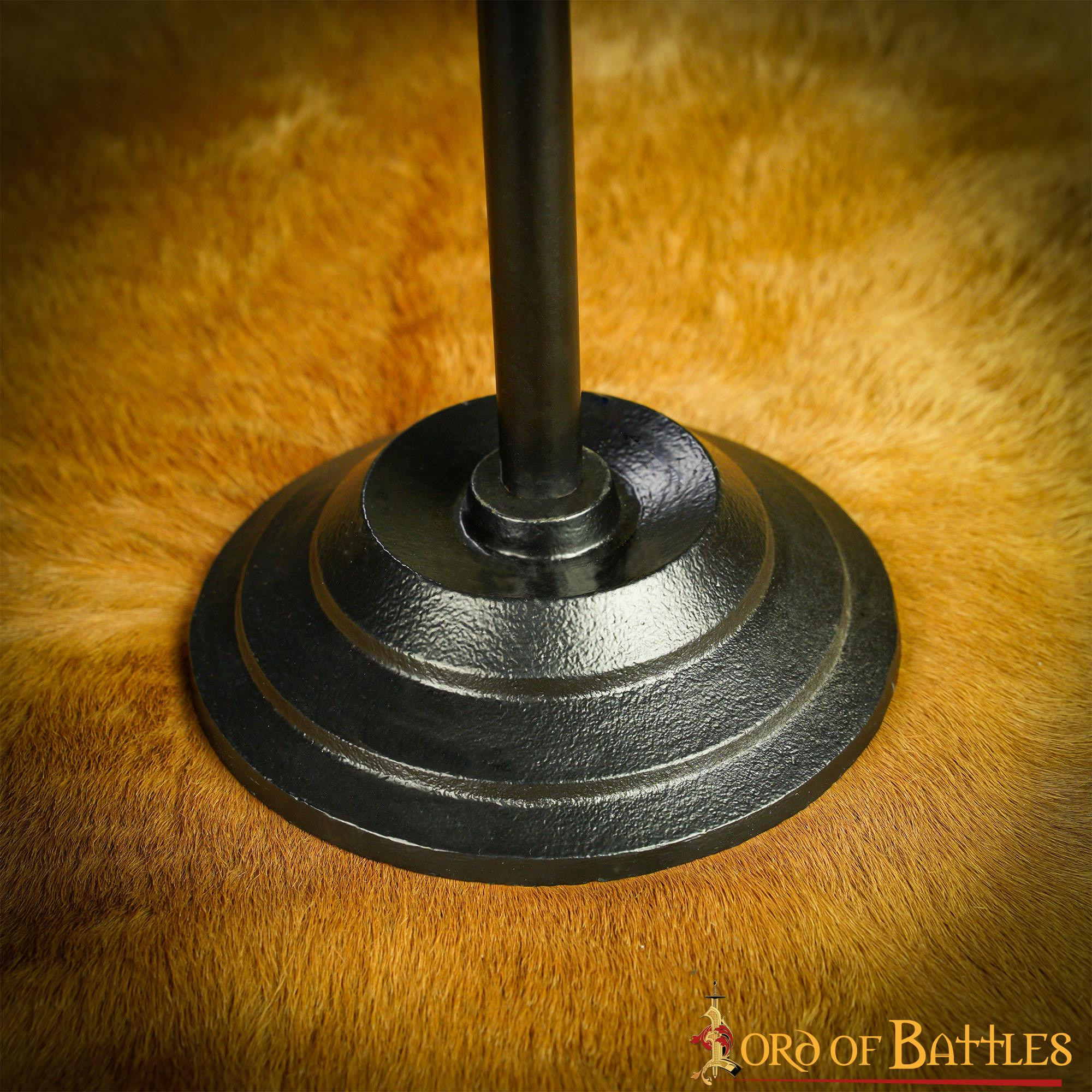 With the Lord of Battles brand, synonymous with quality and craftsmanship, you can be sure that you are purchasing a first-class product. This tabletop iron helmet stand is the perfect accessory for history buffs, collectors and enthusiasts of medieval culture. Not only does it safely protect and display your helmets, it also adds a touch of style and elegance to any space it's placed in.