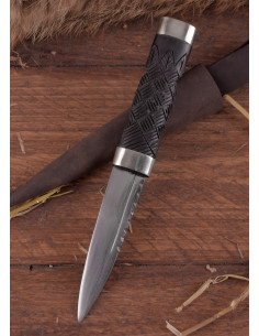 Today we present our small Scottish knife Sgian Dubh, an essential piece for any lover of Scottish culture. This small knife has been forged by hand and has an ornate wooden handle that gives it a touch of class and elegance.