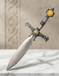 Imagine owning a piece that not only enhances and adds prestige but also activates your sense of belonging to an ancient and noble narrative. The Salomon dagger, with its aged silver finish, invites you to walk through eras of glory and mystery, making you feel like a guardian of history. Toledo craftsmanship, reflected in every detail, ensures that your acquisition is not just an object, but a tangible legacy, a symbol of distinction that speaks of your good taste and respect for culture.