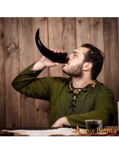 This drinking horn is the perfect complement to brighten up your meetings with friends, whether it's enjoying a refreshing beer or wearing it as part of your decoration. Its engraved Nordic design and visually appealing black front make it a true object of desire.