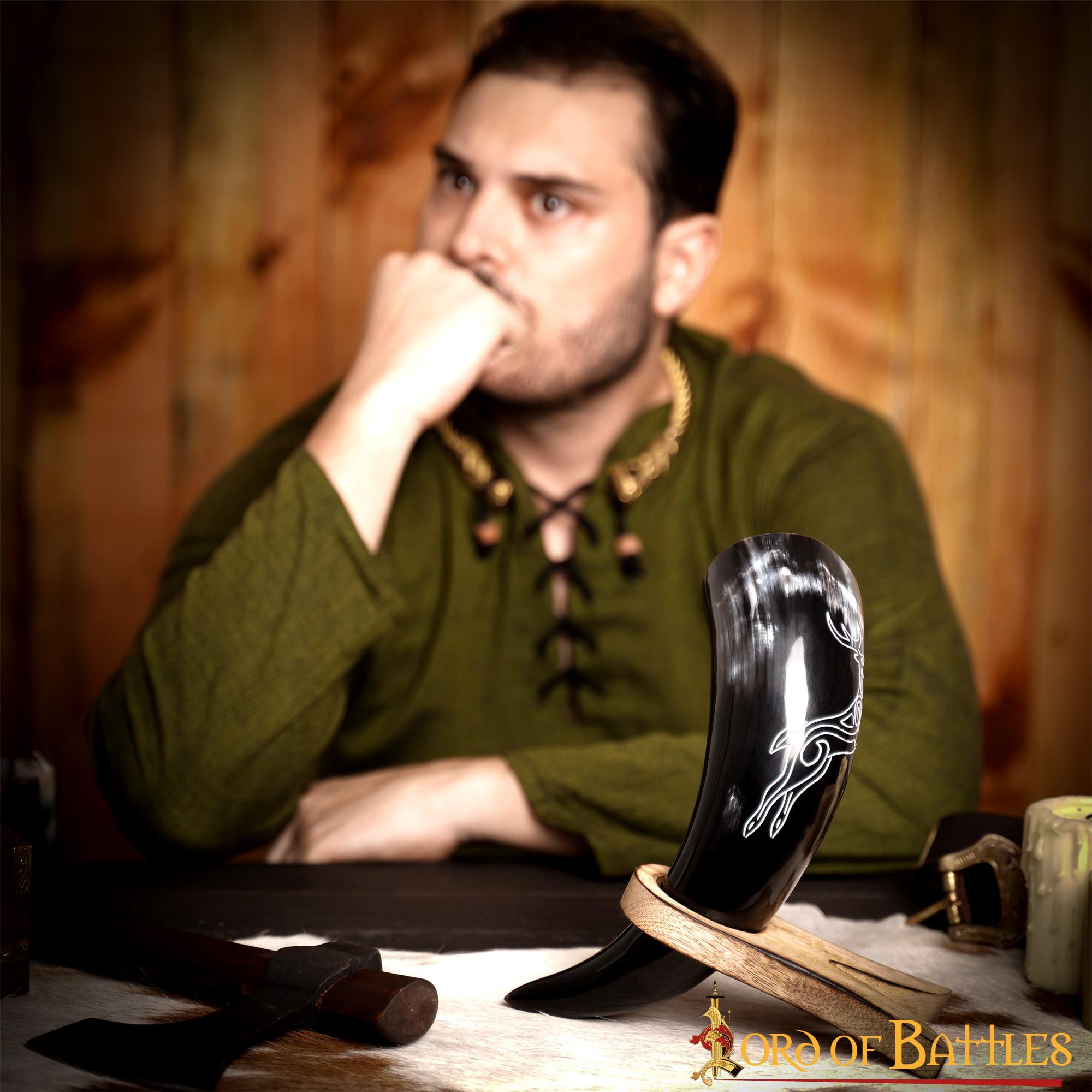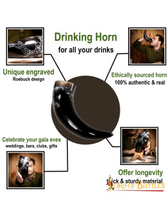 Discover our Viking roe horn made of real ox horn! Perfect to enjoy a beer with your friends or to decorate your decoration. Its unique design and dark shiny front make it visually appealing, making it an ideal gift for your loved ones. In addition, it comes with a practical bag that will allow you to take care of it effortlessly for many years.