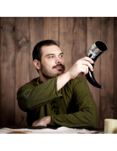 With a total capacity of approximately 400-500 ml, this bovine horn is ideal for enjoying your favorite drinks in style. Its hand-engraved design with the symbol of the rampant lion gives it a unique and striking medieval touch.