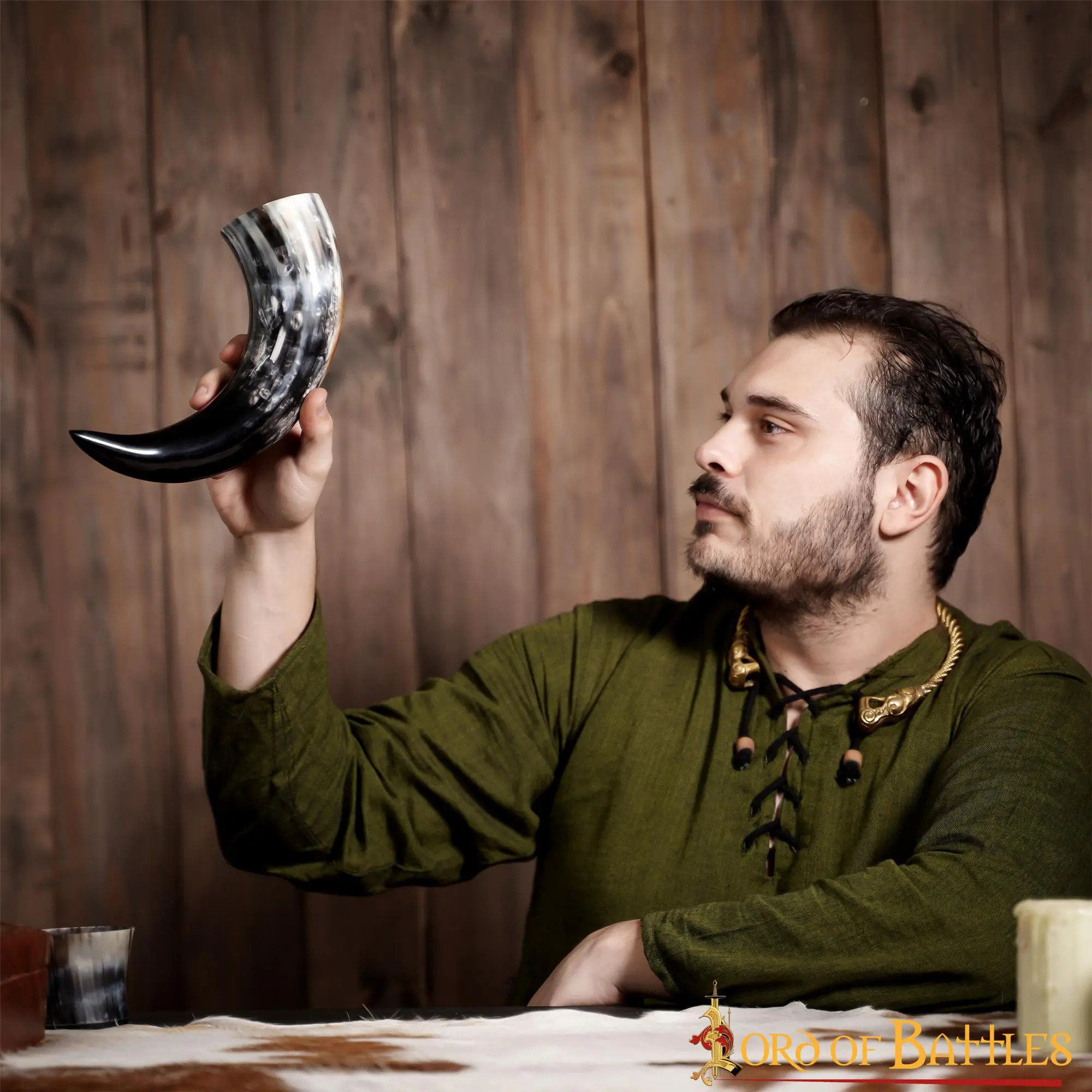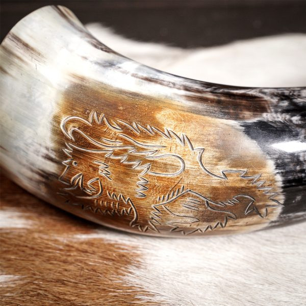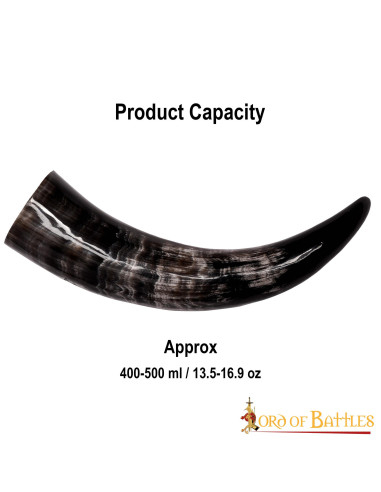 Discover the fascinating Viking drinking horn with the Rampant Lion design from the prestigious Lord of Battles brand. The most amazing thing about this horn is that it is completely GENUINE and comes from an ethical source, thus guaranteeing its authenticity and unmatched quality.