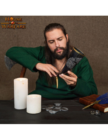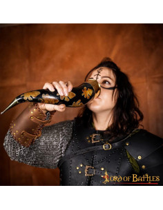 With the Lord of Battles Drinking Horn with carbonized flecks and brass fittings, you will be able to enjoy your favorite drinks in a unique and exceptional way. This product is truly unique as each horn is handcrafted from ethically sourced ox horn, thus ensuring quality and respect for animals.