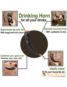 But that's not all, this viking drinking horn is not only an awesome accessory but also gives you extra protection when you're on a mission. With its Troll Cross design engraved on the horn, you'll be able to instantly scare away dangerous trolls and the arrows of the wood elves. Nothing can stand in your way with this powerful amulet!