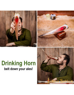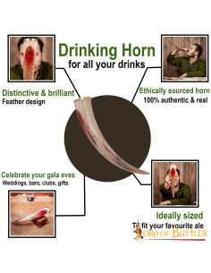 This drinking horn is handcrafted from a real ox horn. The total capacity of the horn is approx. 400-500 ml (of a liquid with up to 20% alcohol content).