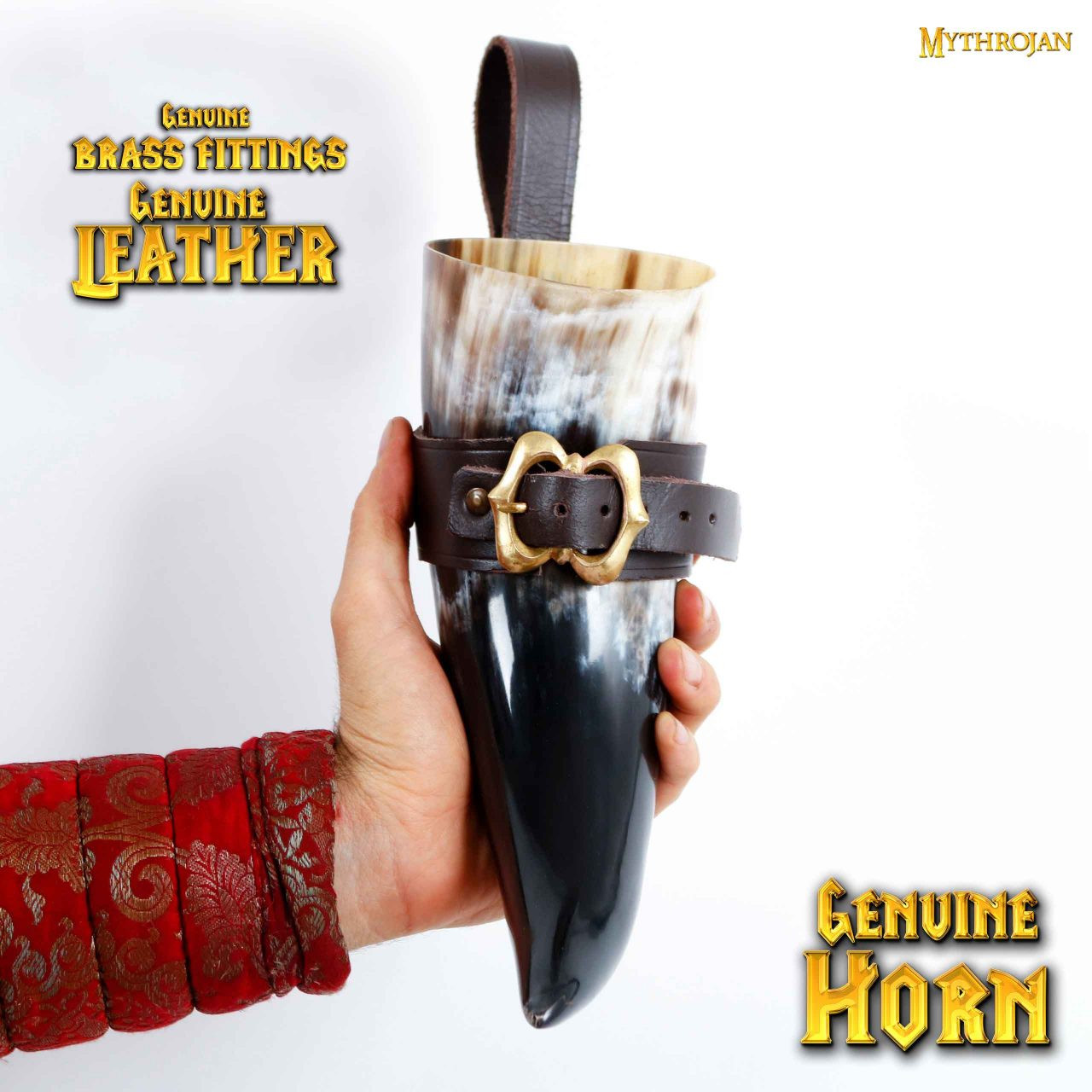 Handcrafted from genuine, ethically sourced horn, our Loyal Soldier Medieval Horn comes with a leather baldric with a buckle that allows it to be hung securely on your belt. Plus, the horn design is meant to be 100% leak-free, which means you can enjoy your favorite beverages without worrying about spills.