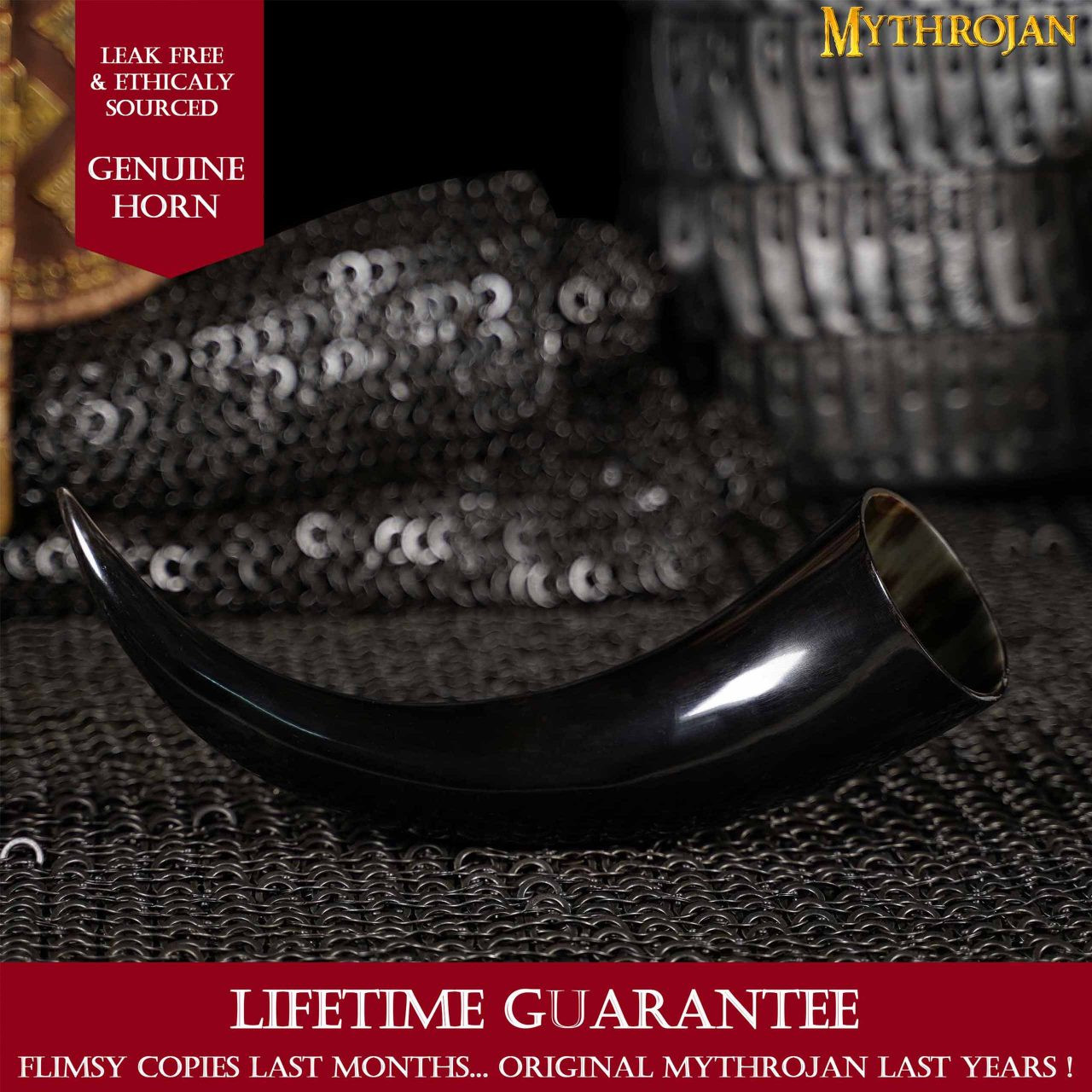 - 100% Genuine Leather Holder: You will never lose your horn again. We offer you a carefully made HORN HOLDER, totally FREE! Wear it on your belt along with your trusty ax or deadly sword. How to transport your precious horn to events Don't worry! We also offer you a FREE MYTHROJAN protective bag!