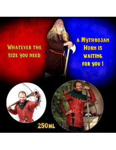 To complete the set, a 100% genuine leather holder, also handcrafted, is included, which will allow you to always carry your horn at your side, attached to your belt, next to your axe or sword, if you decide to immerse yourself in the full experience. And, to make transporting it even easier, you will receive a Mythrojan protective bag, ideal for keeping your horn safe while traveling to your events.