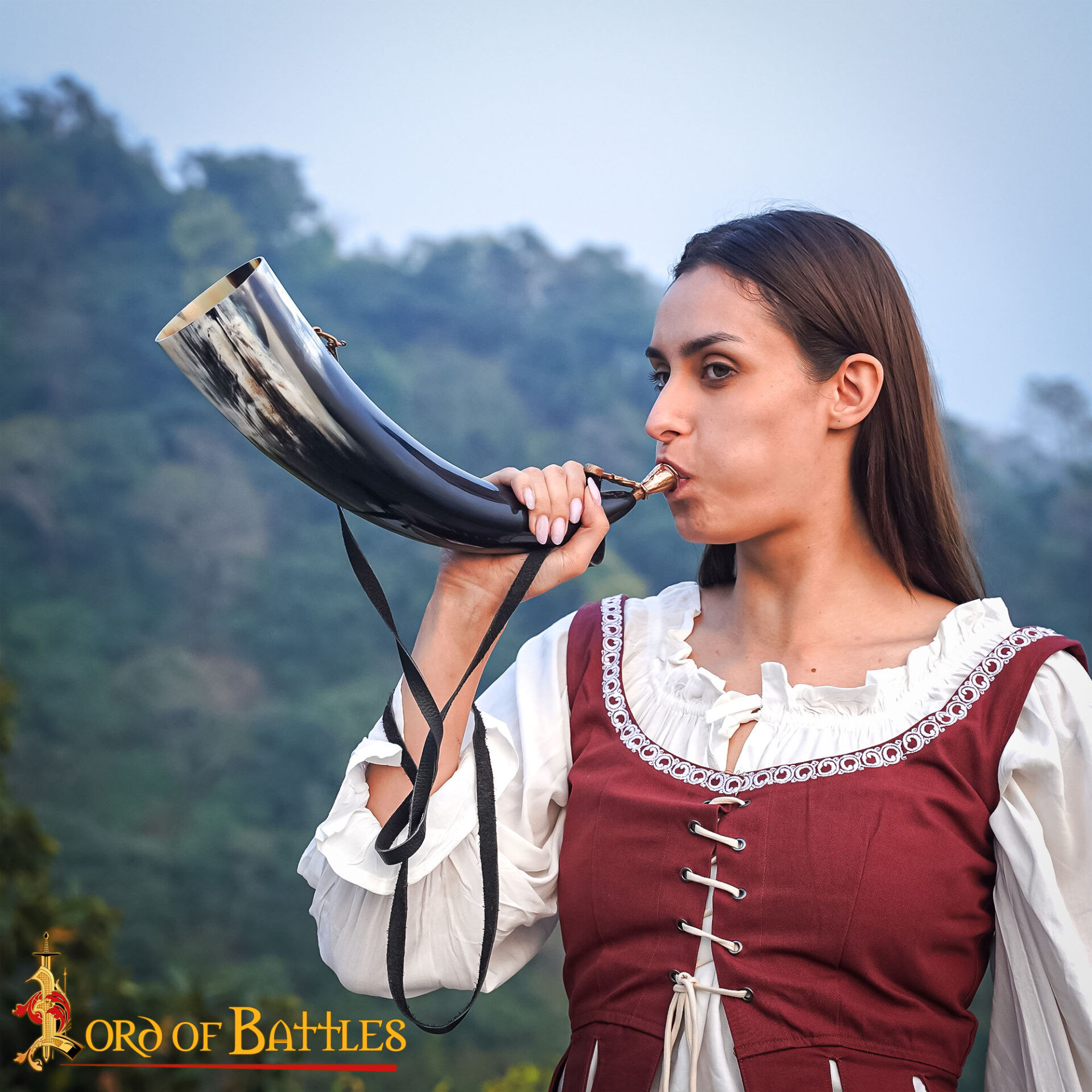 - "Buy authentic medieval horn with brass mouthpiece" means acquiring a unique piece, ideal for collectors and organizers of themed events.