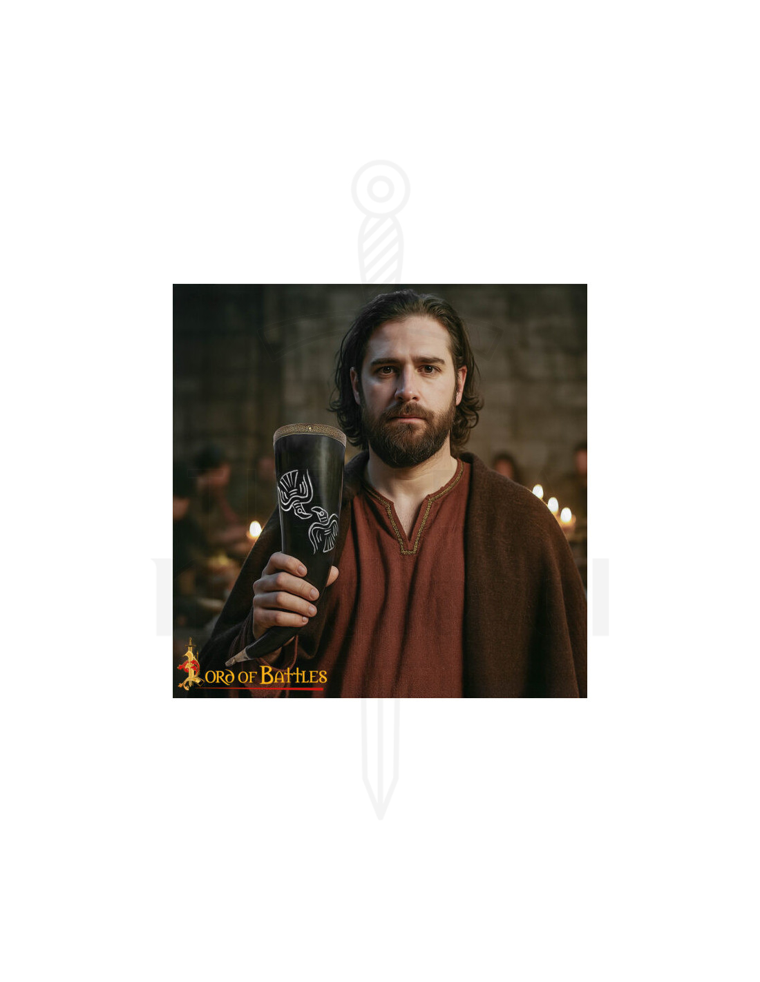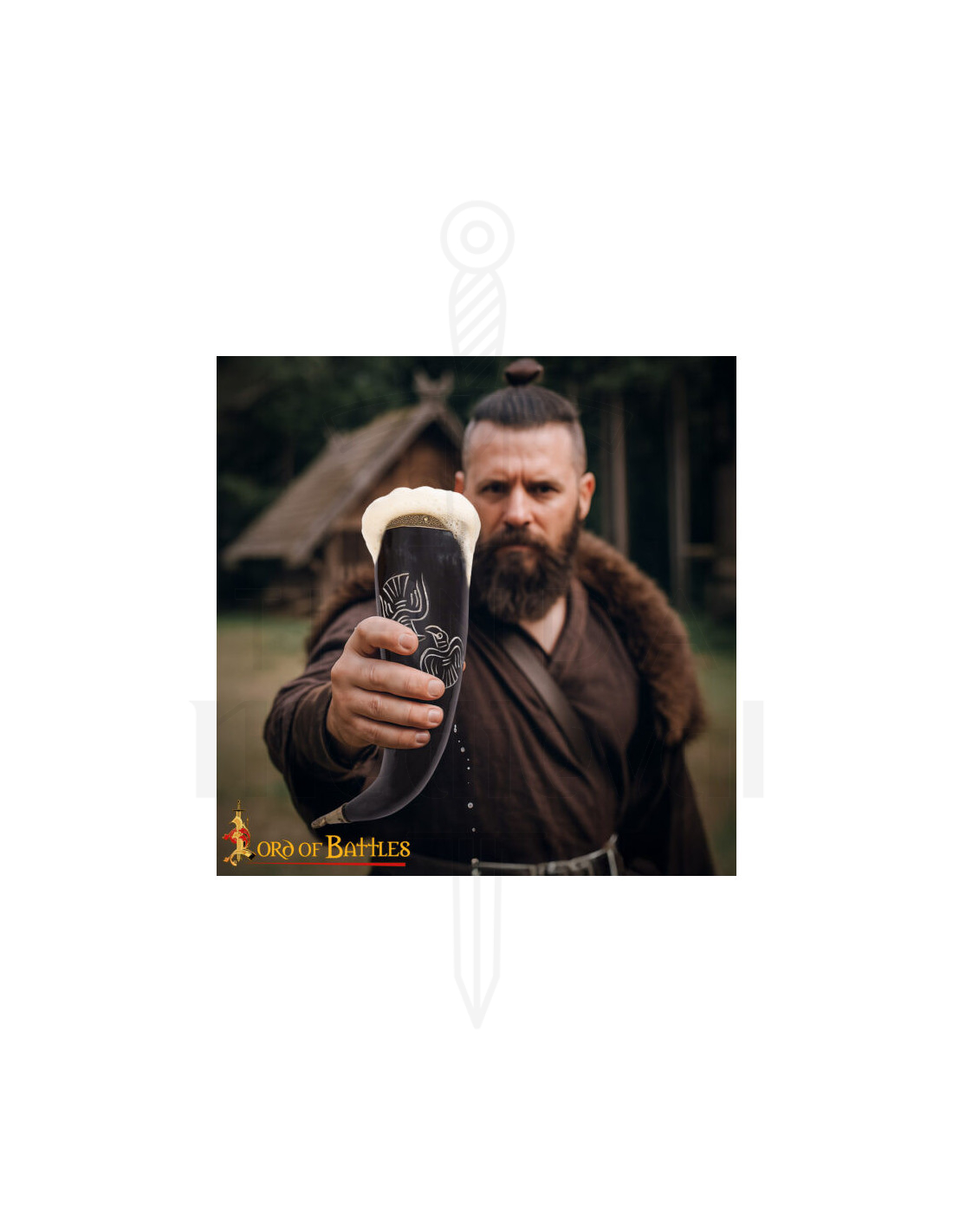 If you are looking to buy the Engraved Viking Horn of Ox with Nordic Bird, you will find in this piece the perfect combination of history, craftsmanship, and utility, a memorable gift and a statement of style for any lover of Viking tradition.