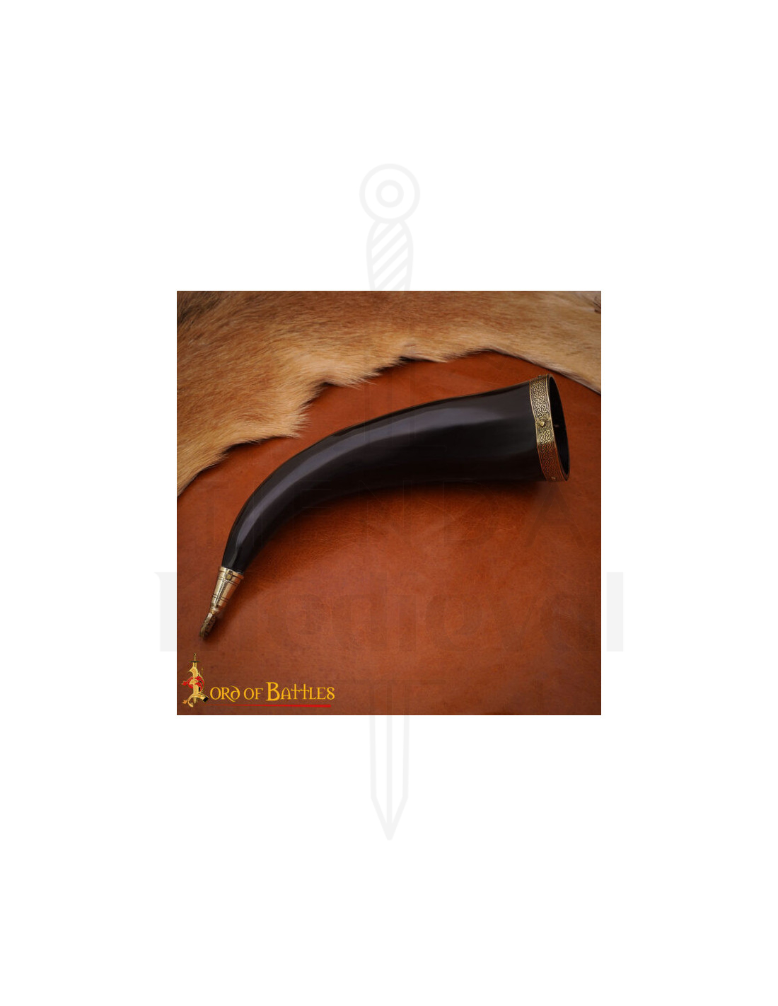 Feel how history comes to life in your hands every time you raise this engraved horn, a piece that draws attention and awakens stories in any table or corner where you place it.