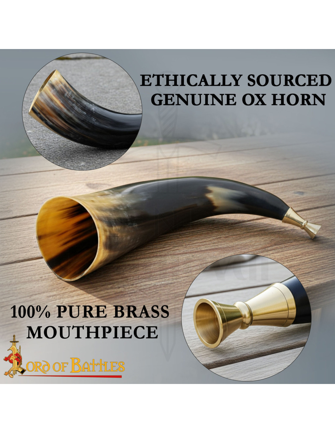The Viking Trumpet with Solid Brass Mouthpiece is an ideal accessory to complement your Viking outfit and add authenticity to your next themed party or historical reenactment event. Here are some key details about this trumpet: