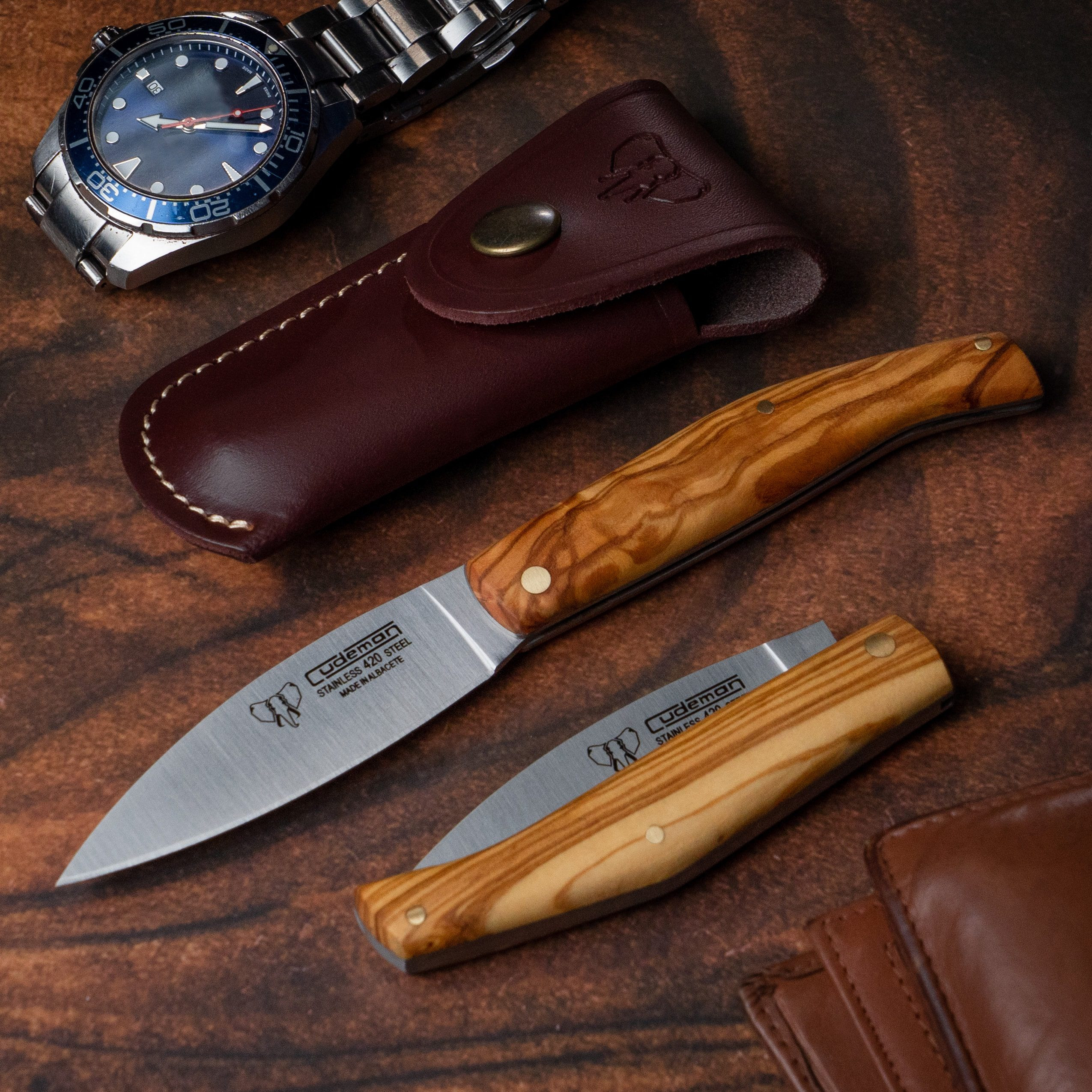 Inquiry about Cudeman hunting knife, satin natural olive handle (with sheath)