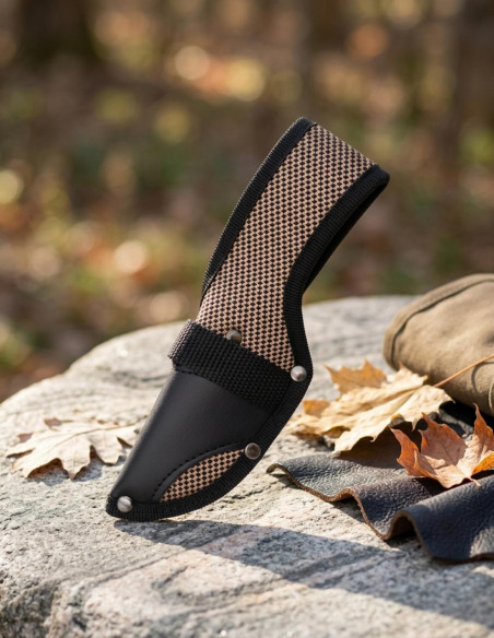 Don't let ordinary tools limit you. The Third H0402BW hunting knife is the vehicle of your change, an extension of your will, designed to provide you the control and precision you deserve. From the robust and practical shape of its 8 cm blade to the perfect weight of 176 grams that balances with your strength, this knife not only cuts but also affirms your character. Every detail, from the high-density nylon and leather sheath to the delicate grain of the pakkawood, is crafted to make you feel like you have the best ally in any situation, ready to accompany you in conquering your day.