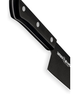 The blade of the Shadow model Santoku Samura knife is made of Japanese molybdenum-vanadium AUS8 steel, which is particularly resistant to corrosion. This original Japanese steel is renowned for its exceptional sharpness, allowing you to enjoy precise cuts for every task.