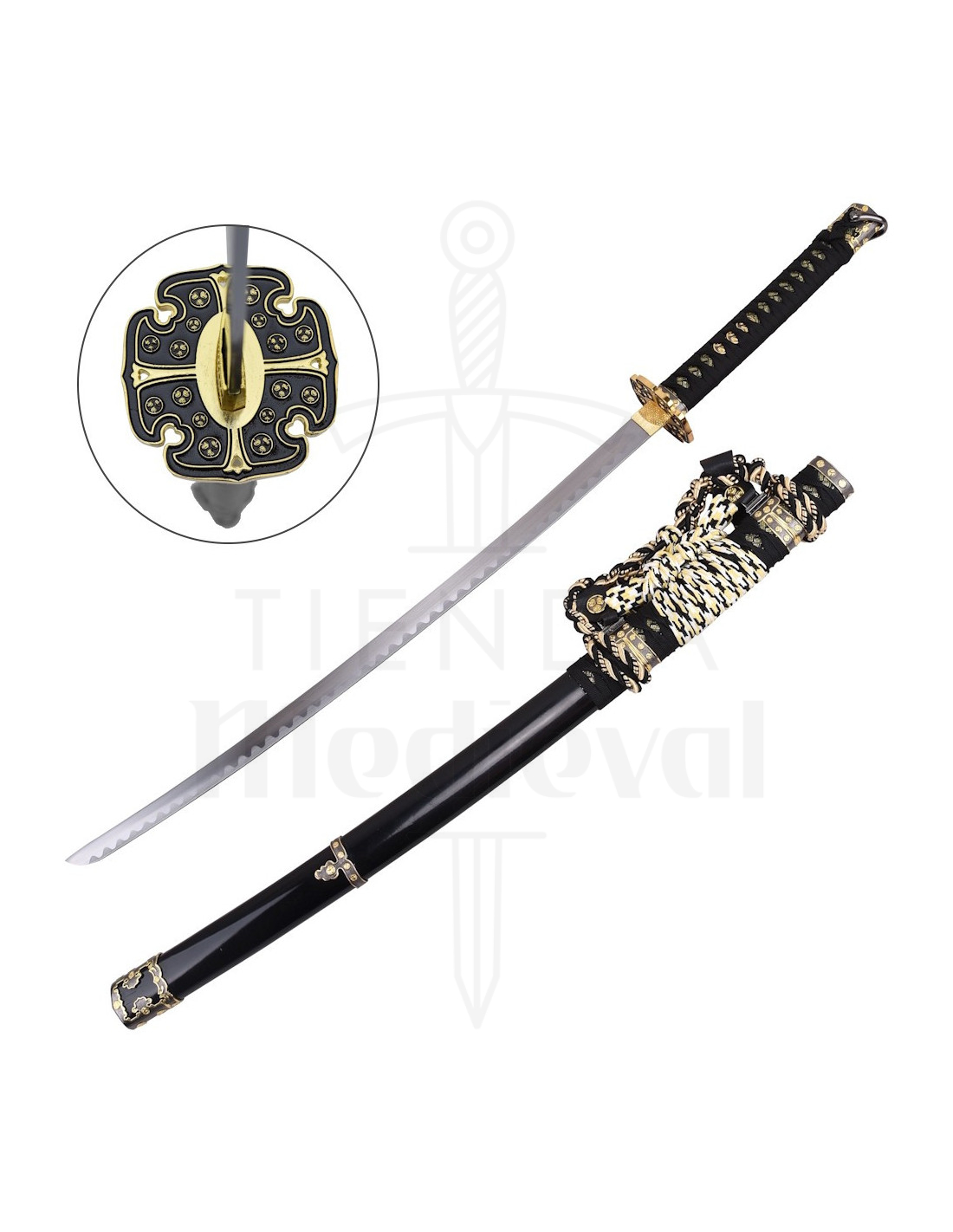 If you're looking to buy the Traditional Japanese Black Decorative Katana with Brass Details as a gift or to complete a collection, you'll acquire a piece that combines aesthetics and tradition. Inspired by the historical figure of the samurai, it provides a connection to a cultural legacy renowned for its sense of honor and craftsmanship, without losing the ornamental touch that makes this katana unique.