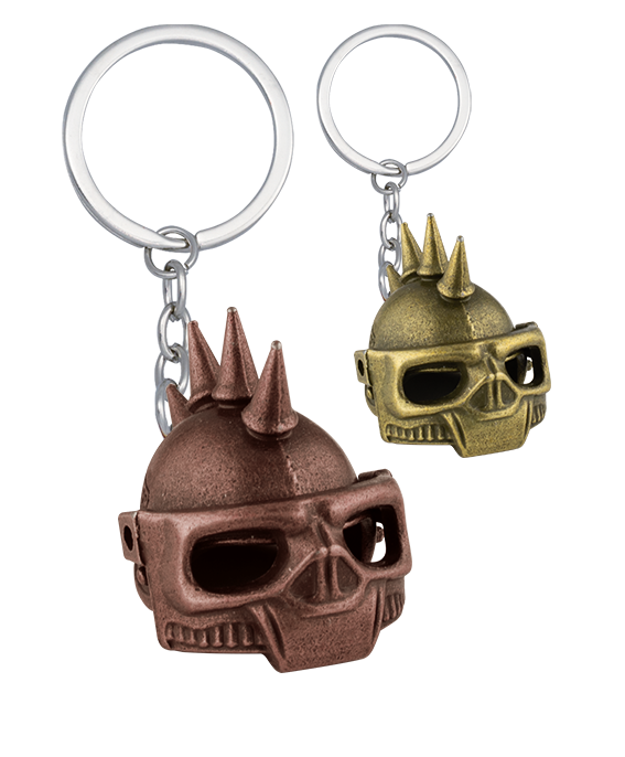 Get ready for a Mad Max-style trip with the Spiked Skull Helmet Keychain in assorted colors from the Barbaric brand! This keychain will not only help you keep your keys organized, but will also add a touch of rebellion and style to your daily life. Here are all the features that make this keychain a truly unique accessory: