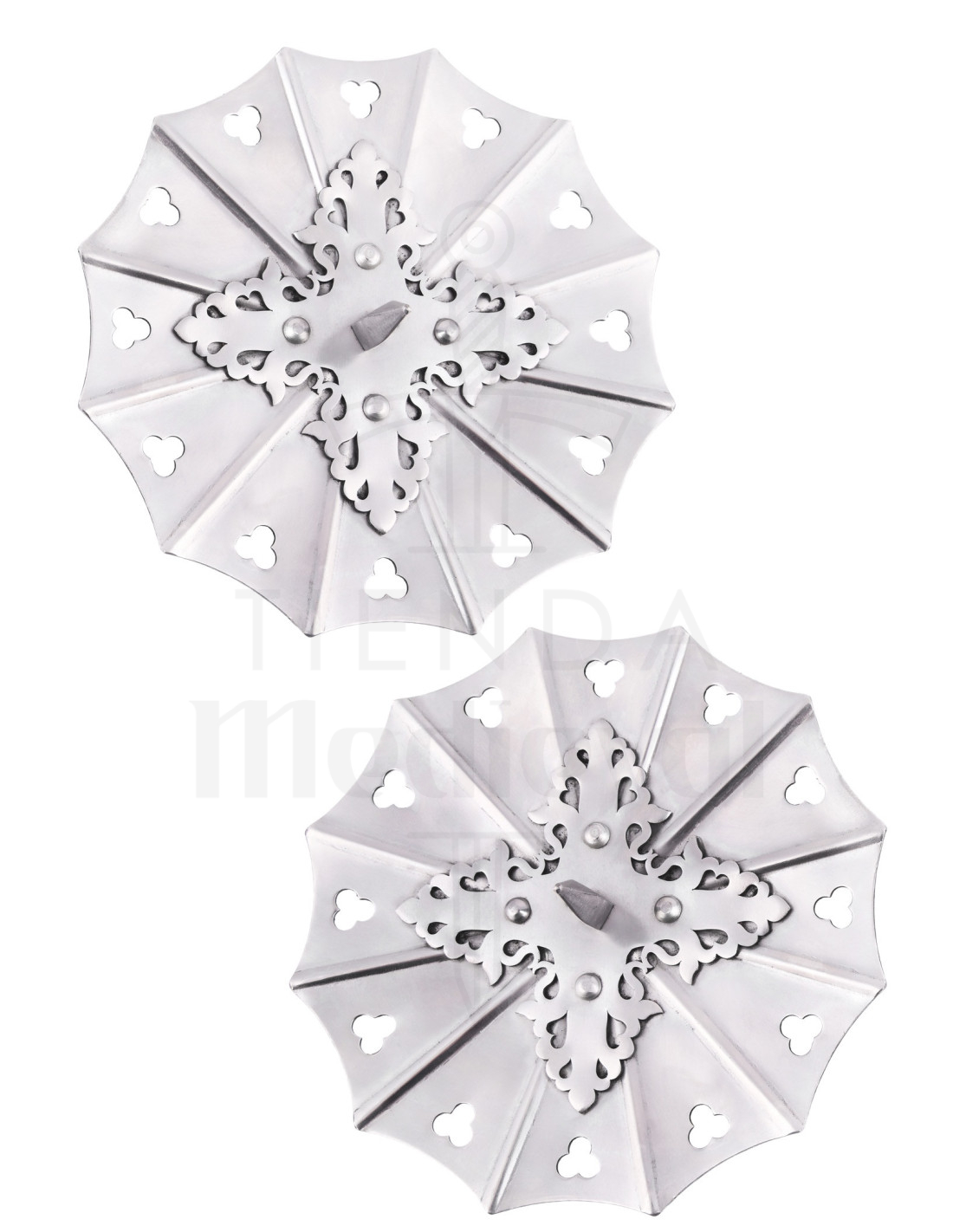 Enter the late Middle Ages with this authentic pair of Gothic steel Besagues, a jewel that evokes the protection and splendor of the European knights of the 15th century. Find out why these pieces are essential for your armor collection: