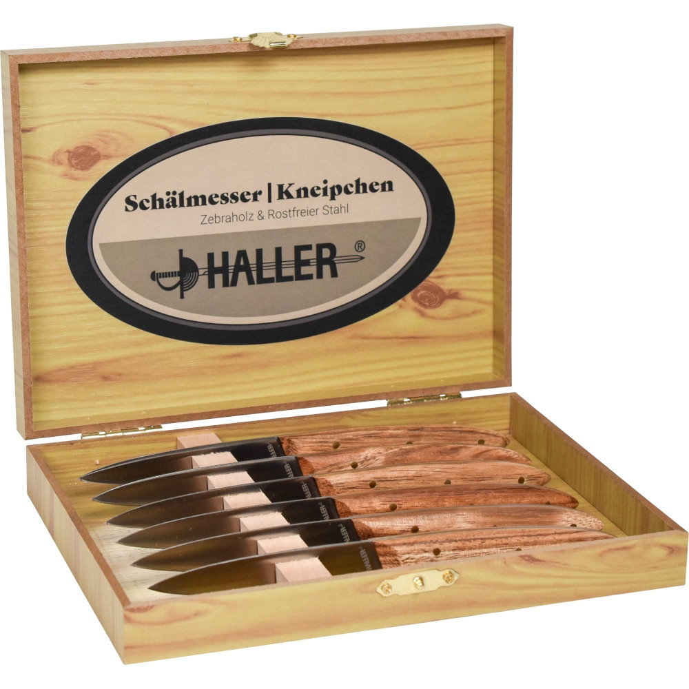 Set of 6 zebrawood handle knives in a box (17 cm.)