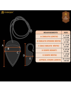 It comes with a dark cord that allows you to carry it around your neck or secure the sheath to your belt, facilitating transport at fairs, events, or strolls through rural settings. Its compact design makes it discreet yet substantial, ideal for those seeking a piece with history and functionality.