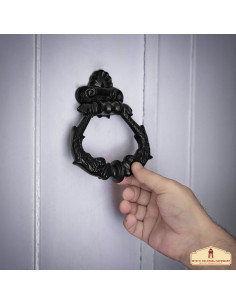 Add a touch of distinction and character to the entrance of your home with this medieval iron door knocker in antique style, ring model. Inspired by traditional design, this piece is ideal for those looking to combine elegance and functionality at their door. The detailed and refined design of the ring not only stands out for its beauty but also for its durability, as it is 100% handmade by expert artisans who preserve the techniques and skills of past eras.