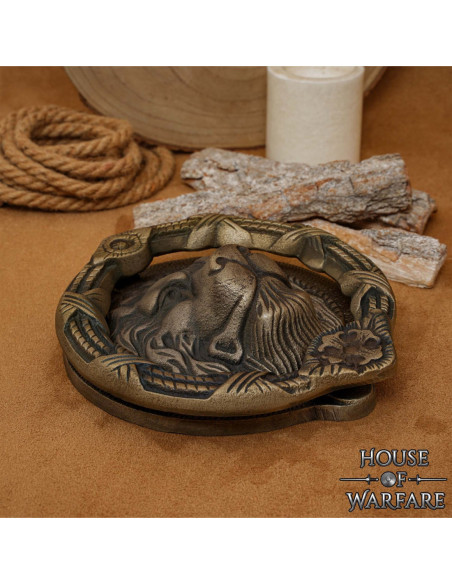 Imagine each arrival accompanied by an air of authority, a symbol of strength deeply rooted in history that conveys trust. The sensation of opening the door and being greeted by an element that embodies the presence of leadership and protection, elevating the atmosphere of your space with a bold and noble character. This feeling, this stance, is reflected in every detail of the Medieval Lion Door Knocker in antique brass, a tangible vehicle of power and distinction that transforms any entrance into an act of affirmation.