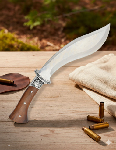 The kukri shape, with its curved profile and single edge, has roots in efficient cutting traditions, historically associated with warriors and craftsmen who needed a versatile tool. That heritage is felt in the sense of controlled power it provides.