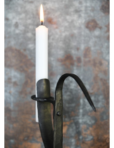Beautify your table with the medieval charm of our hand-forged Table Candlestick with wooden base! This beautiful chandelier is not only an ideal accessory for historical events such as medieval markets, reenactment camps, living history events or LARP, but it is also the perfect choice to spice up your living room at home.
