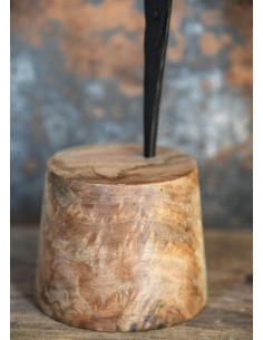 Medieval table candelabra with wooden base (30 cm.)