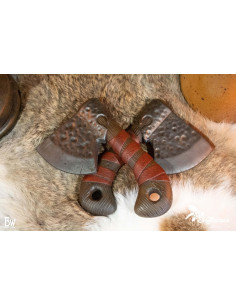 The artisanal detail of this product stands out: its blade evokes classic tools, while its rough texture adds a unique character. The handle, simulating dark wood, is carefully wrapped with red ribbons, providing a firm and comfortable grip in every movement. Additionally, it includes a handy hole for attaching a cord, making transportation or quick access easier.